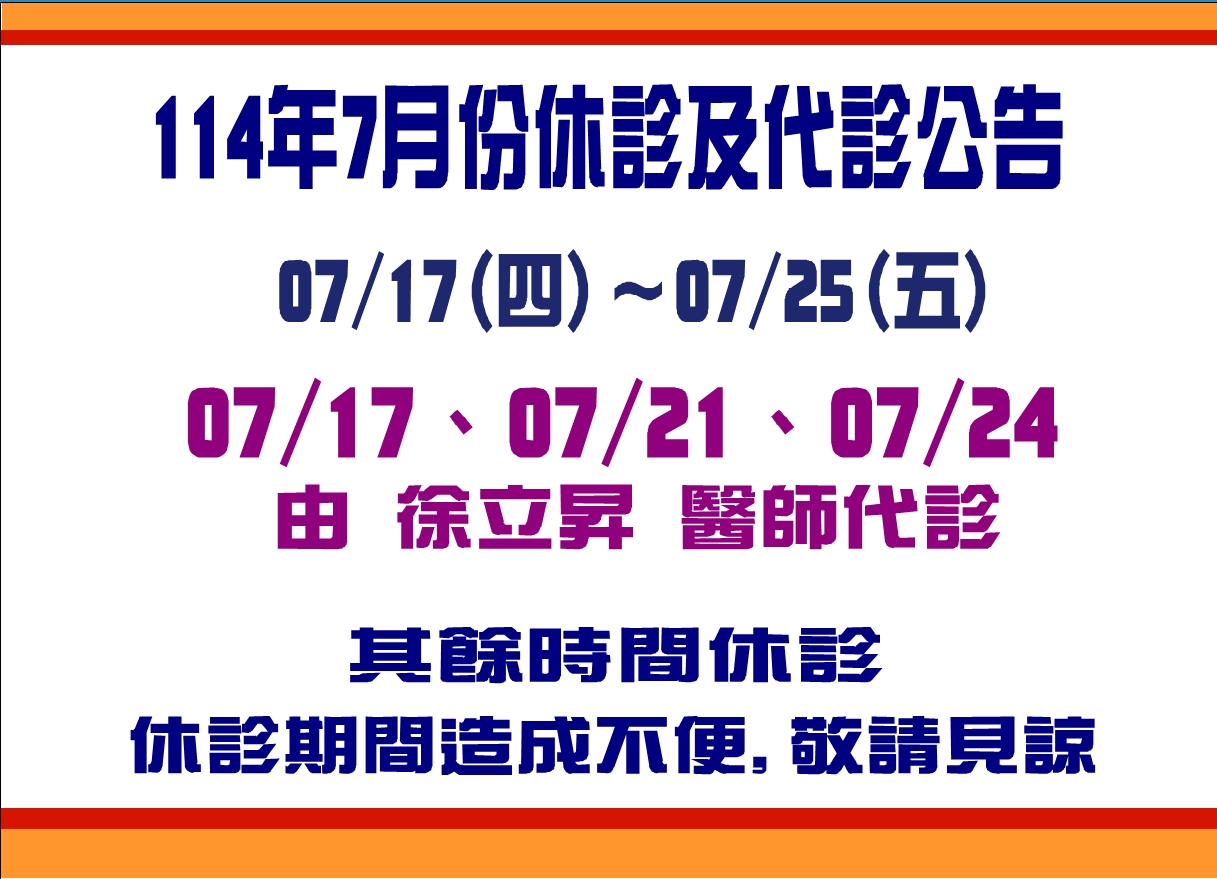 114年7月門診異動及休診公告
